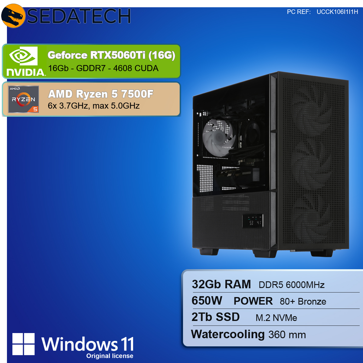 Gaming PC, AMD Ryzen 5 7500F, Geforce RTX5060Ti 16Gb