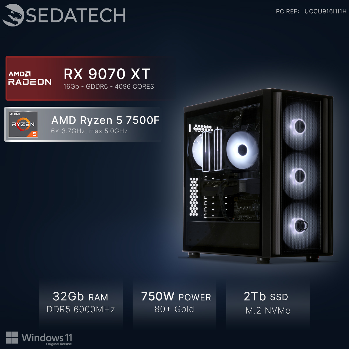 Gaming PC, AMD Ryzen 5 7500F, Radeon RX 9070XT