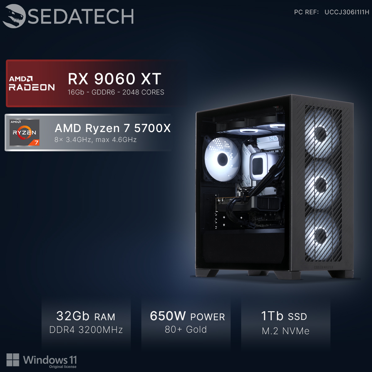 Gaming PC, AMD Ryzen 7 5700X, Radeon RX 9060XT