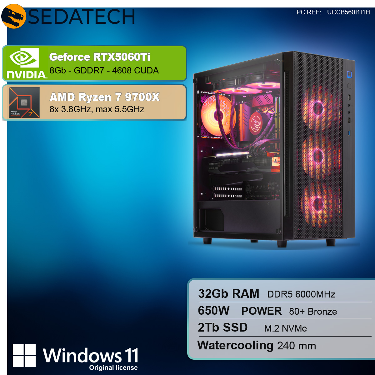 Ein sehr hochwertiges und edles Gehäuse mit modernen Design, gekuppelt mit einer extrem leistungsstarken Grafikkarte Geforce RTX5060Ti 8GB und CPU AMD Ryzen 7 9700X 8x 3.8GHz (max 5.5GHz) zeichnet diesen Rechner aus! Der eignet sich hervorragend für kompromisslose Anwender, die anspruchsvollen 3D Spiele und Multimediaanwendungen in bester 4K Qualität mit voller DirectX 12 Unterstützung geniessen wollen