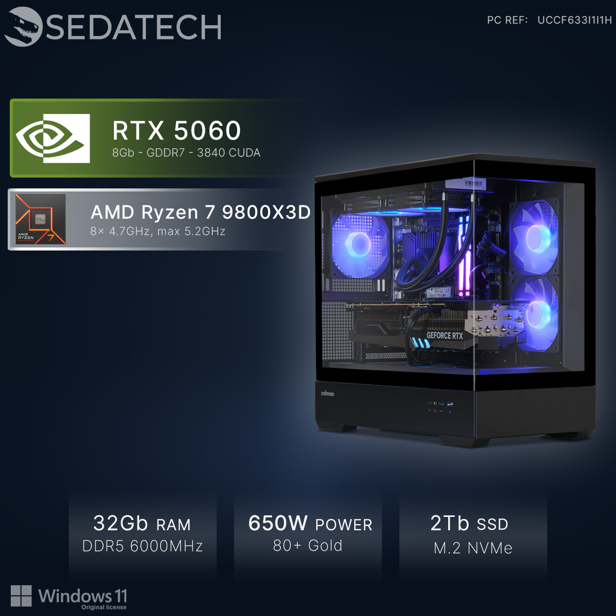 Gaming PC, AMD Ryzen 7 9800X3D, Geforce RTX5060