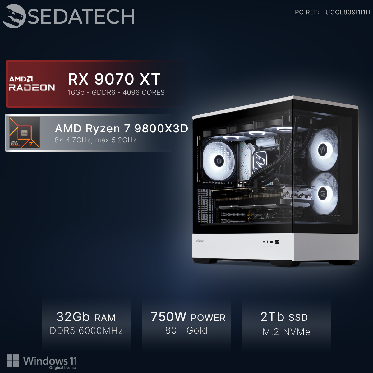 Gaming PC, AMD Ryzen 7 9800X3D, Radeon RX 9070XT
