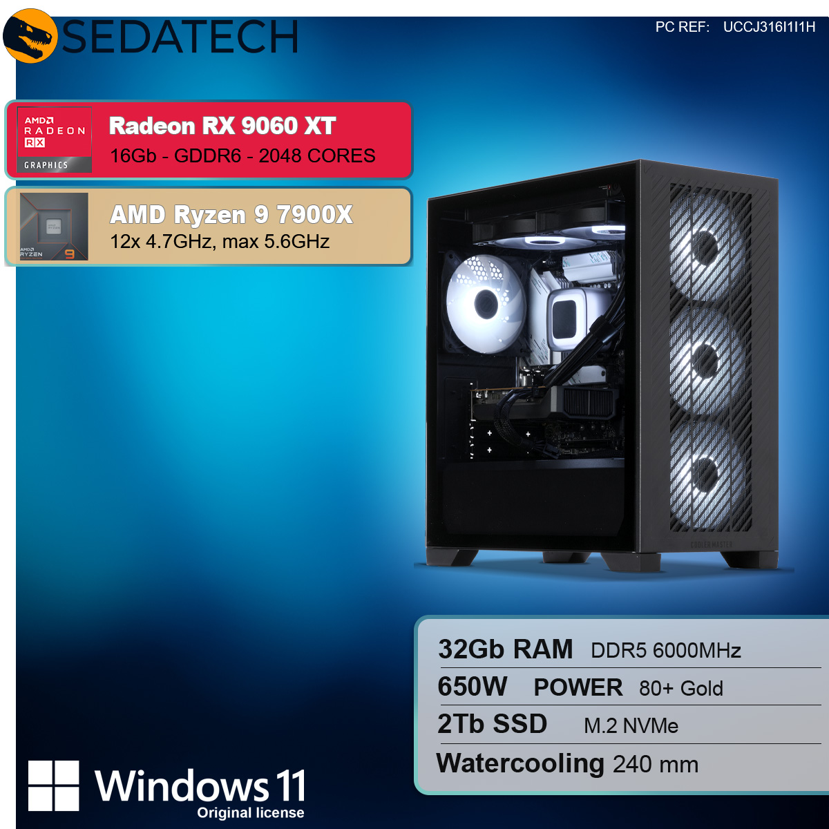Gaming PC, AMD Ryzen 9 7900X, Radeon RX 9060XT