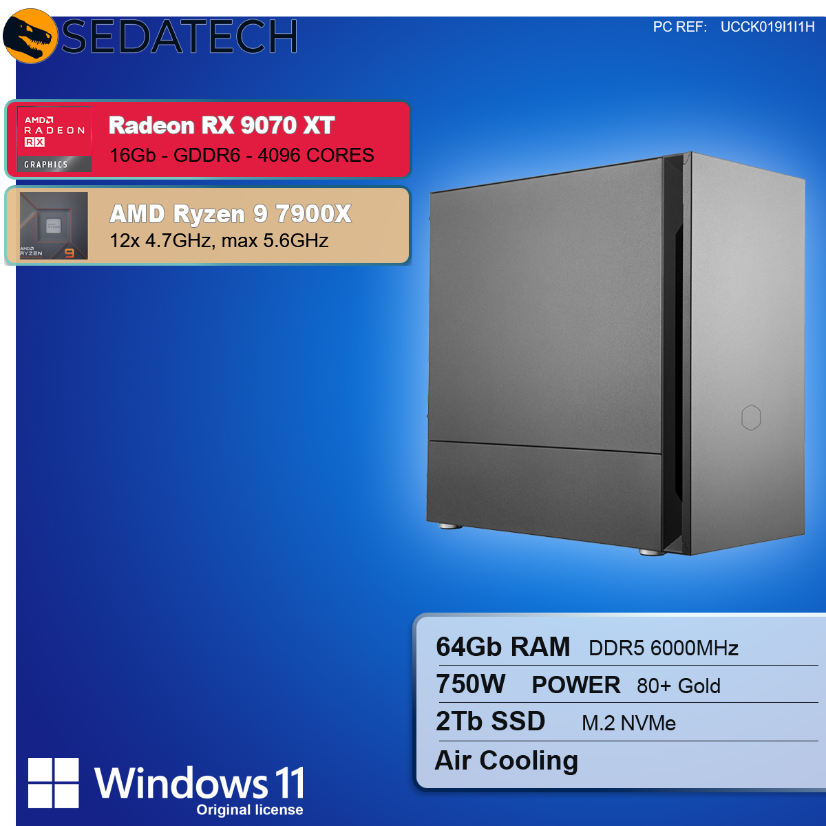 Gaming PC, AMD Ryzen 9 7900X, Radeon RX 9070XT