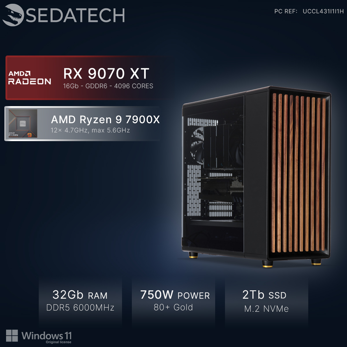 Gaming PC, AMD Ryzen 9 7900X, Radeon RX 9070XT