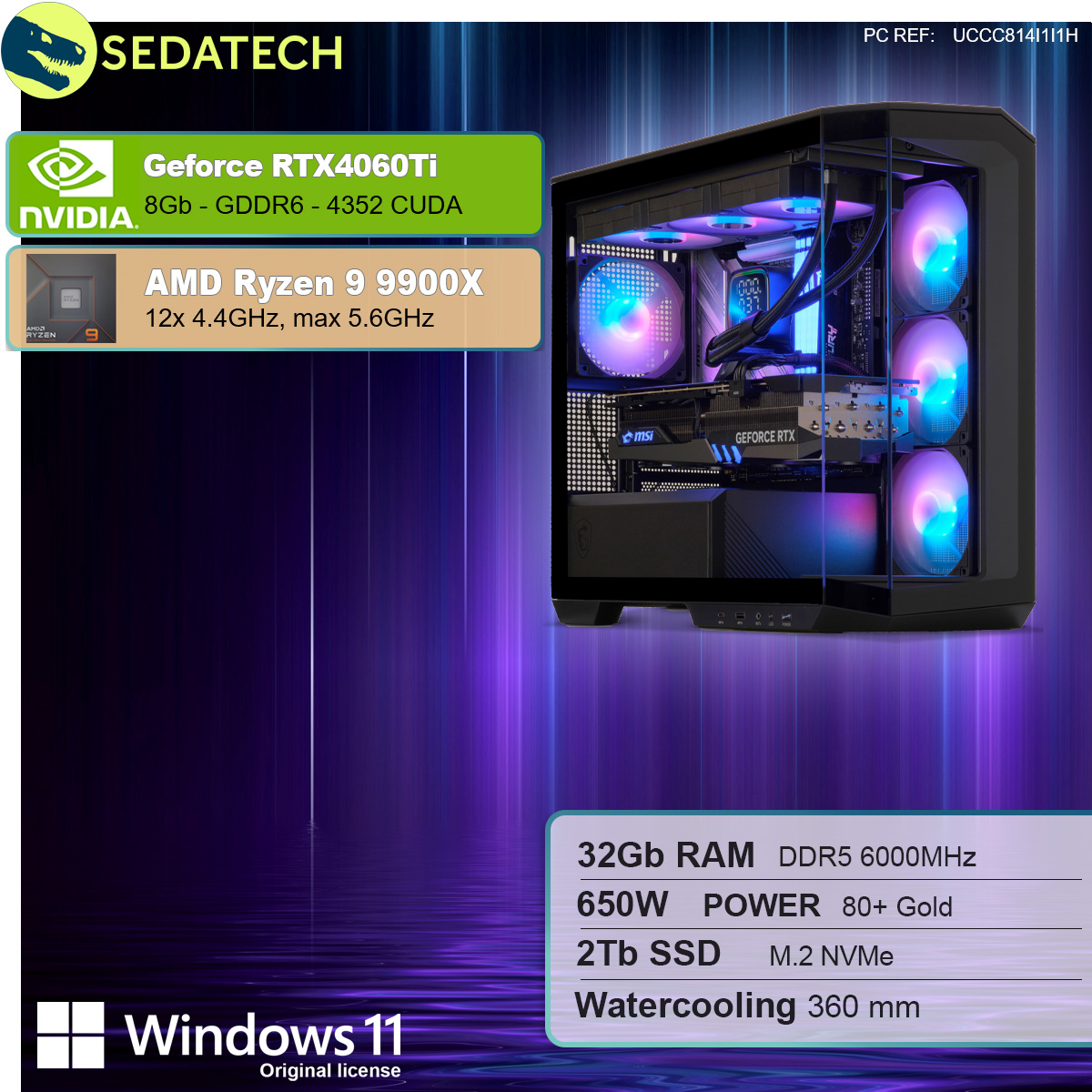 Gaming PC, AMD Ryzen 9 9900X, Geforce RTX4060Ti