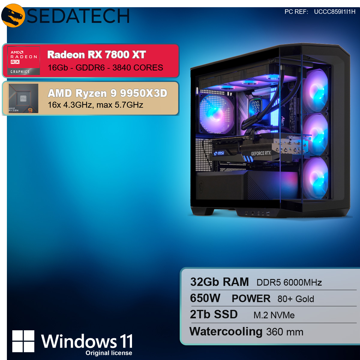 Gaming PC, AMD Ryzen 9 9950X3D, Radeon RX 7800XT