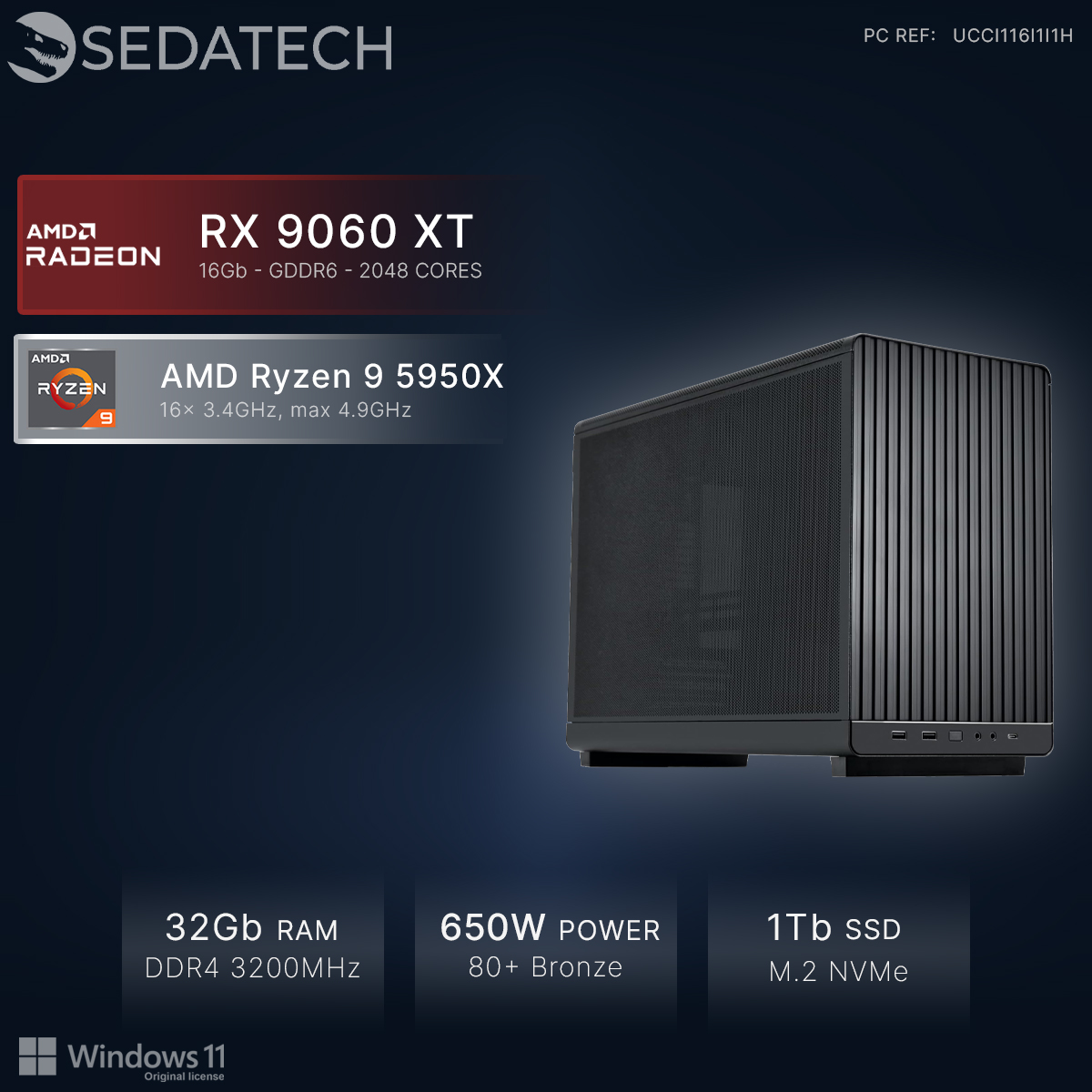 Pro Gaming Mini-PC, AMD Ryzen 9 5950X, Radeon RX 9060XT